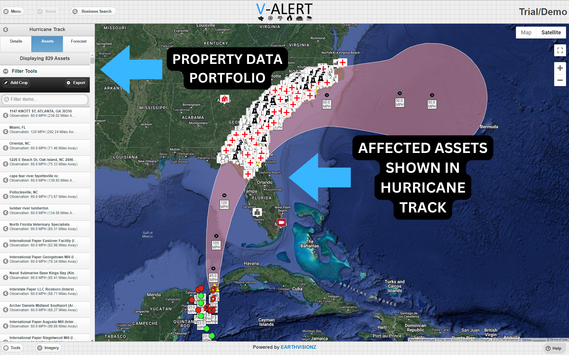 Assess and quantify climate damage-related threats to your real estate portfolio. Utilize V-Alert to upload entire CRE Portfolios and track their condition in relation to storms and other risks. Assess property damage from anywhere in the world prior to on site inspections. Better understand general risk to your assets with map views of historical storm, flood, and disaster data going back in time as much as 20 years.